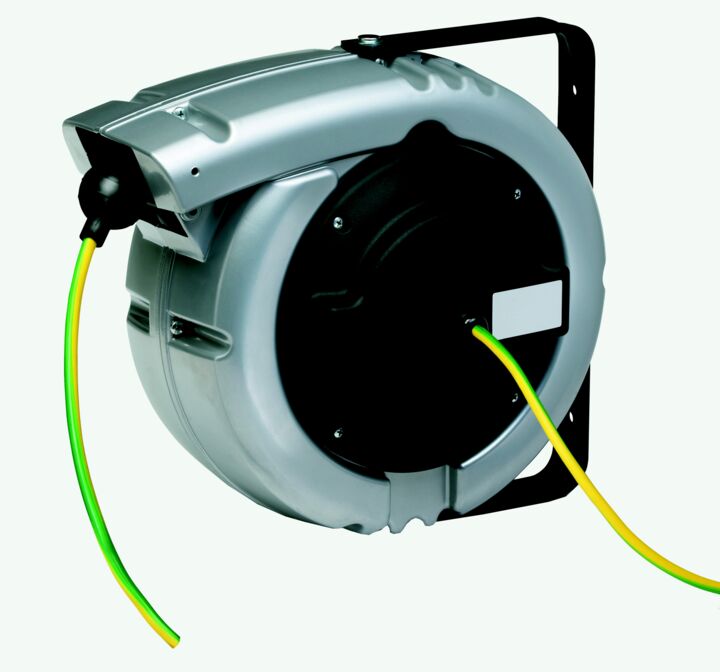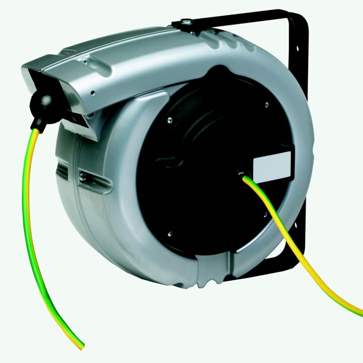 • Federrückzug für eine gleichmäßige und mühelose Aufwicklung des Kabels, um Stolperfallen zu vermeiden und die Sicherheit am Arbeitsplatz zu erhöhen