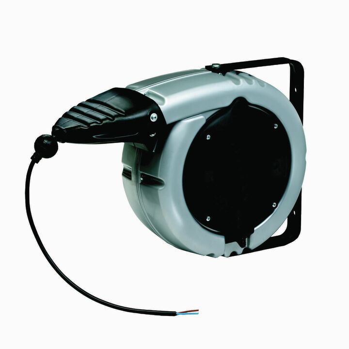 • Federrückzug für eine gleichmäßige und mühelose Aufwicklung des Kabels, um Stolperfallen zu vermeiden und die Sicherheit am Arbeitsplatz zu erhöhen
