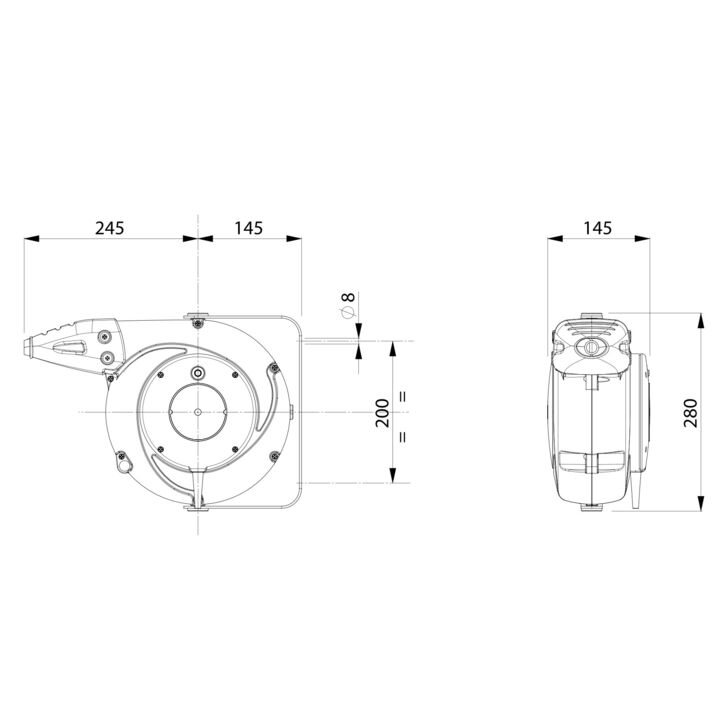 • Federrückzug für eine gleichmäßige und mühelose Aufwicklung des Kabels, um Stolperfallen zu vermeiden und die Sicherheit am Arbeitsplatz zu erhöhen