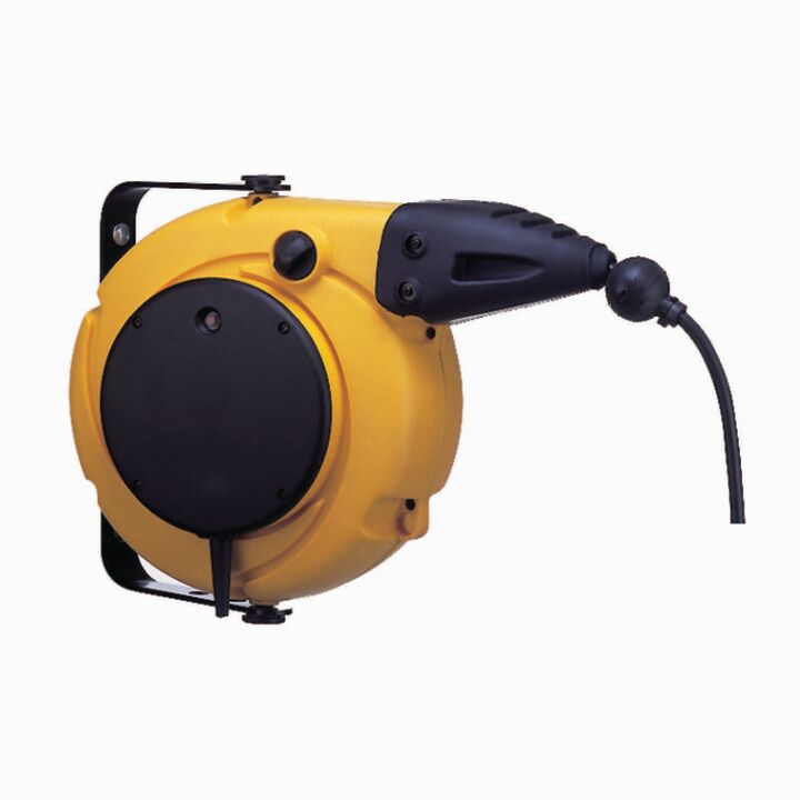 • Federrückzug für eine gleichmäßige und mühelose Aufwicklung des Kabels, um Stolperfallen zu vermeiden und die Sicherheit am Arbeitsplatz zu erhöhen