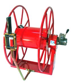Schlauchkapazität: max. 25m - 2"/ 45m - 1 1/2"/ 50m - 1 1/4"/ 80m - 1" Elektromotor 230V DC mit Zahnradübersetzung