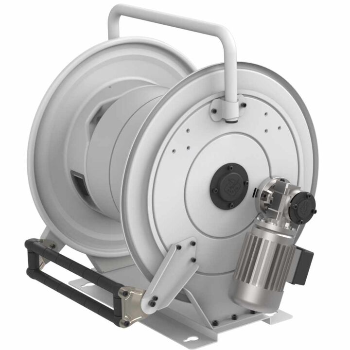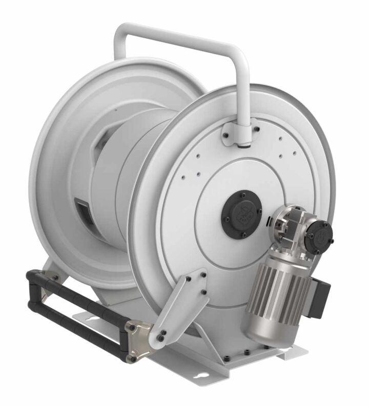 Der Schlauchaufroller OSE stellt mit seinem Elektroantrieb und einer Kapazität von bis zu 50 Metern ¾“-Schlauch eine elektronische Alternative zum OSM 710 dar.