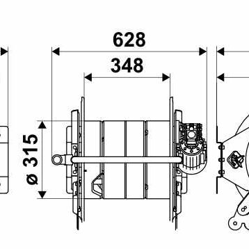 • Optional erhältlich: Automatische Schlauchführung, welche den Schlauch beim Einrollen immer gleichmäßig über die Trommelbreite verteilt