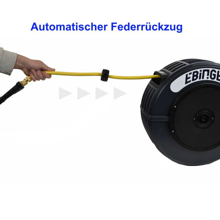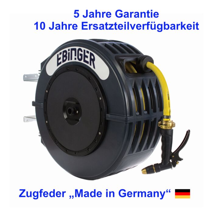 Unser automatischer Schlauchaufroller vereint Funktionalität mit Langlebigkeit und eignet sich perfekt für eine Vielzahl von Anwendungen im Garten, in Gewerbebetrieben, in der Landwirtschaft sowie in der Industrie. Die robuste Feder aus deutscher Produktion gewährleistet eine zuverlässige und dauerhafte Leistung.
