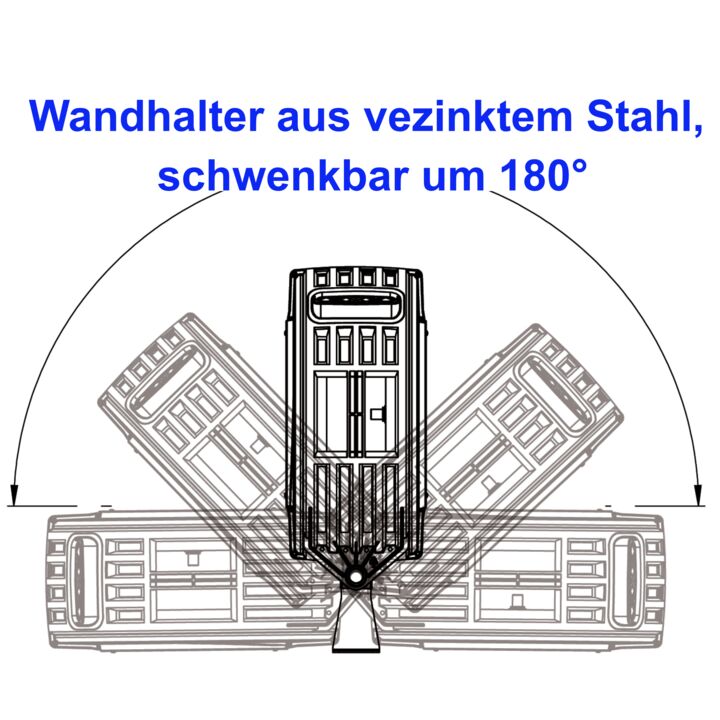 • Schwenkbarer Wandhalter aus verzinktem Stahl mit einem Schwenkbereich von 180°
