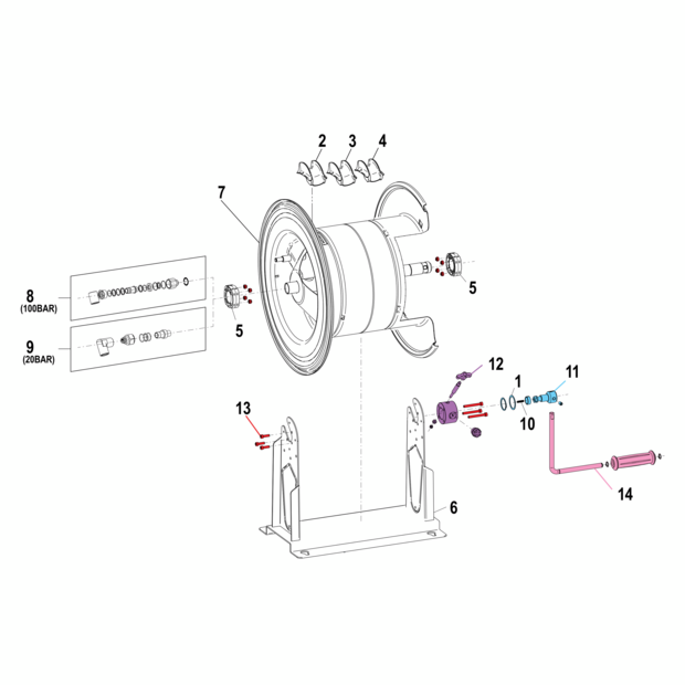 • Sicherheitskurbelsystem damit sich die Handkurbel beim Herausziehen des Schlauchs nicht mitdreht