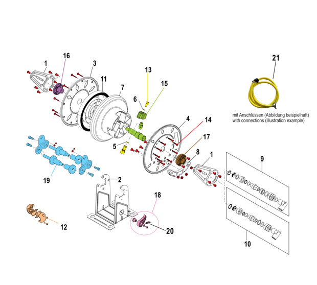 • Anschlüsse: Eingang (Drehgelenk): Stecker NW 7,2 - Ausgang (Schlauch): Kupplung NW 7,2