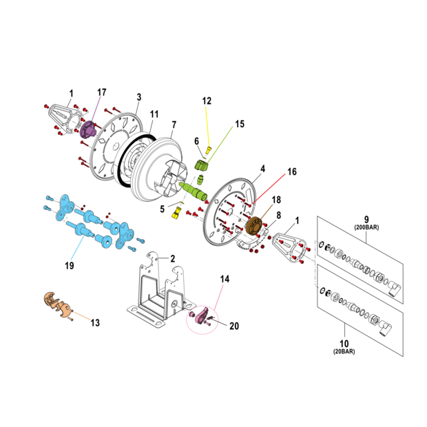 • Schlaucharretierung zur Fixierung des Schlauches bei jeder Umdrehung