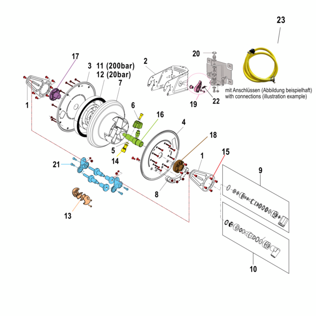 • Schlaucharretierung zur Fixierung des Schlauches bei jeder Umdrehung