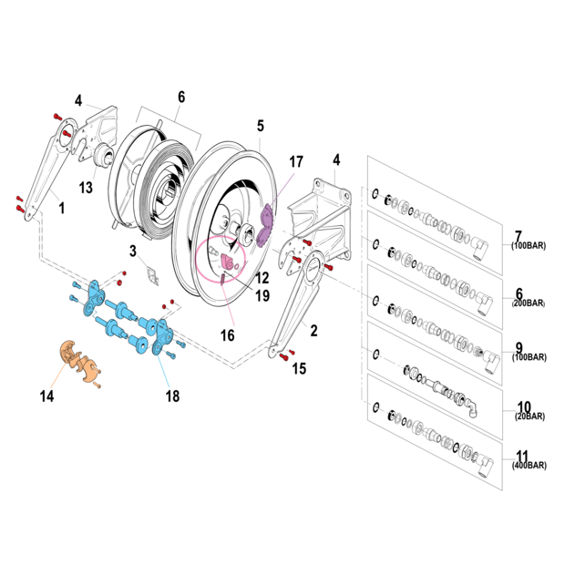 • Anschlüsse: Eingang (Drehgelenk): MS-Schnellkupplung, kompartibel System Geka, Ausgang (Schlauch): MS-Schnellkupplung, kompartibel System Geka