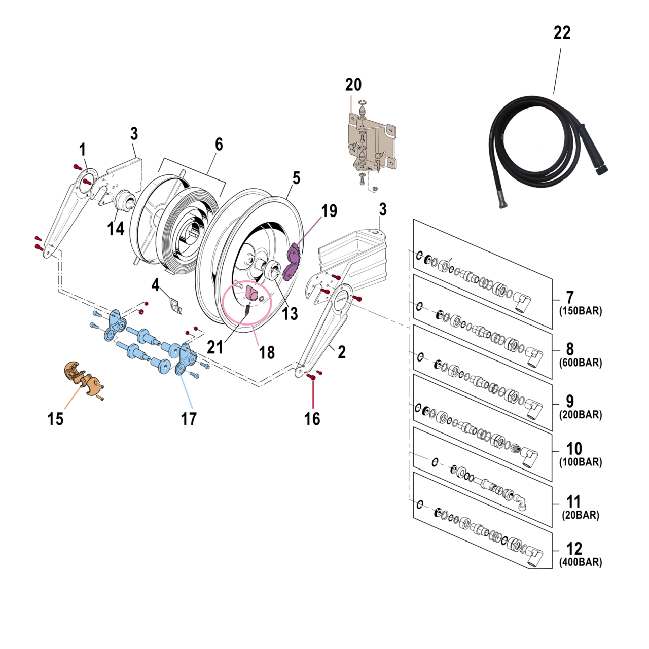 • Anschlüsse: Eingang (Drehgelenk Edelstahl): 22 x 1,5 AG - Ausgang (Schlauch): 22 x 1,5 IG Überwurfmutter