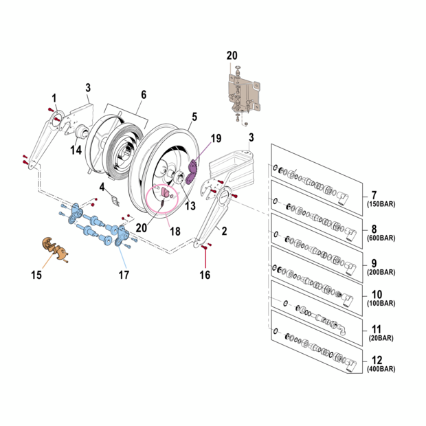 • Schlaucharretierung zur Fixierung des Schlauches bei jeder Umdrehung