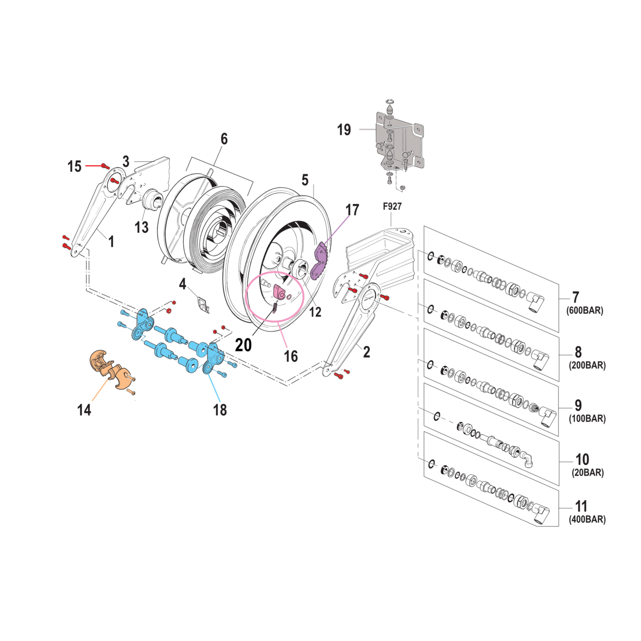 • Schlaucharretierung zur Fixierung des Schlauches bei jeder Umdrehung