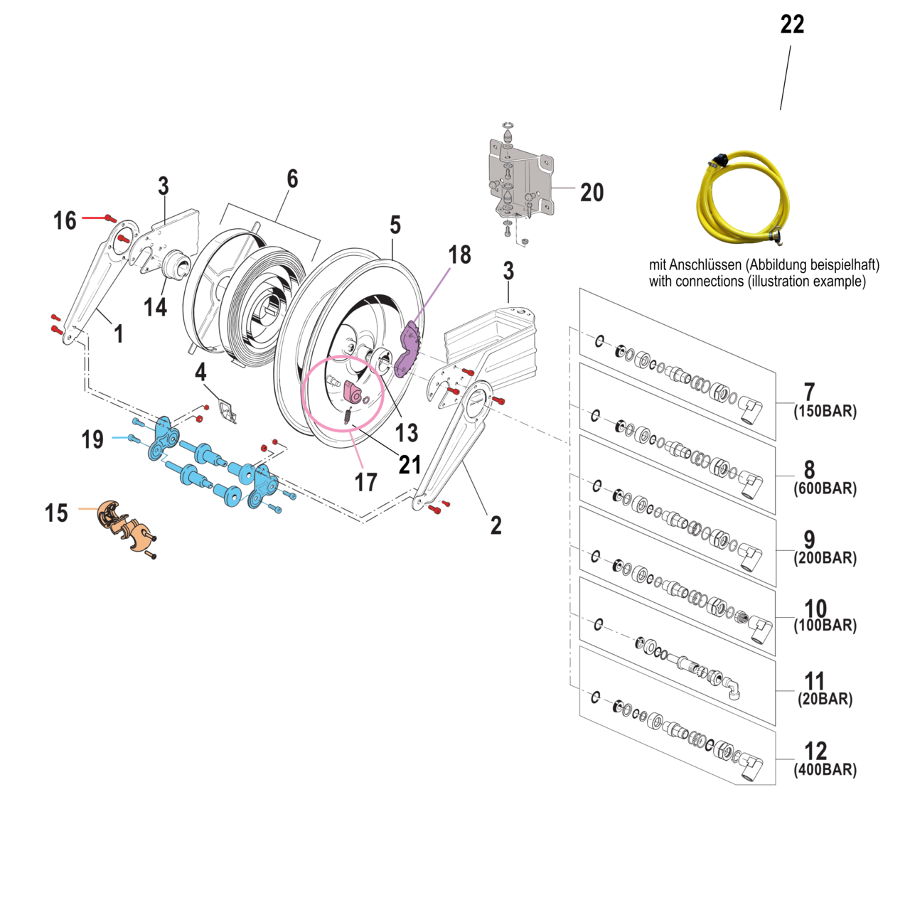 • Anschlüsse: Eingang (Drehgelenk): Stecker NW 7,2 - Ausgang (Schlauch): Kupplung NW 7,2