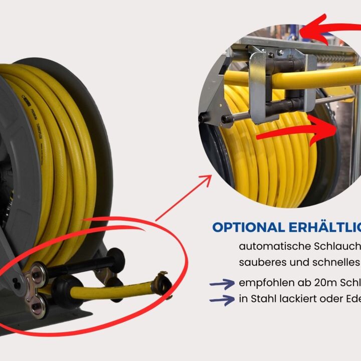Unsere Schlauchaufroller mit Federrückzug sind speziell für den professionellen und industriellen Einsatz konzipiert. Hochwertige Komponenten und eine breite Palette an Zubehör ermöglichen die Anpassung an alle Arbeitsbereiche und Anwendungen. Mit robuster und präziser Bauweise bieten sie eine langlebige, zuverlässige Lösung für vielfältige Anforderungen.