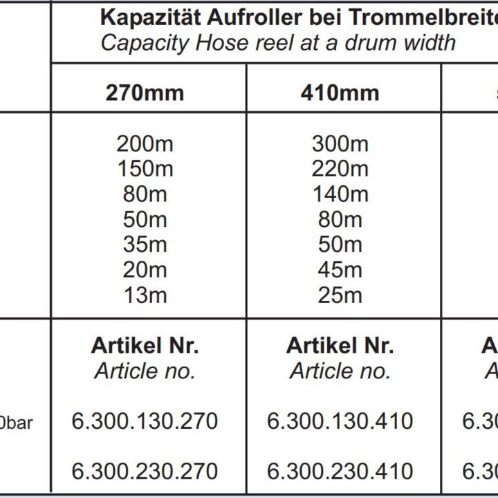 • Schlauchkapazität: 25m - 63mm AD / 45m - 50mm AD