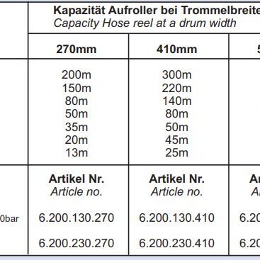 • Schlauchkapazität: 13m - 63mm AD / 20m - 50mm AD