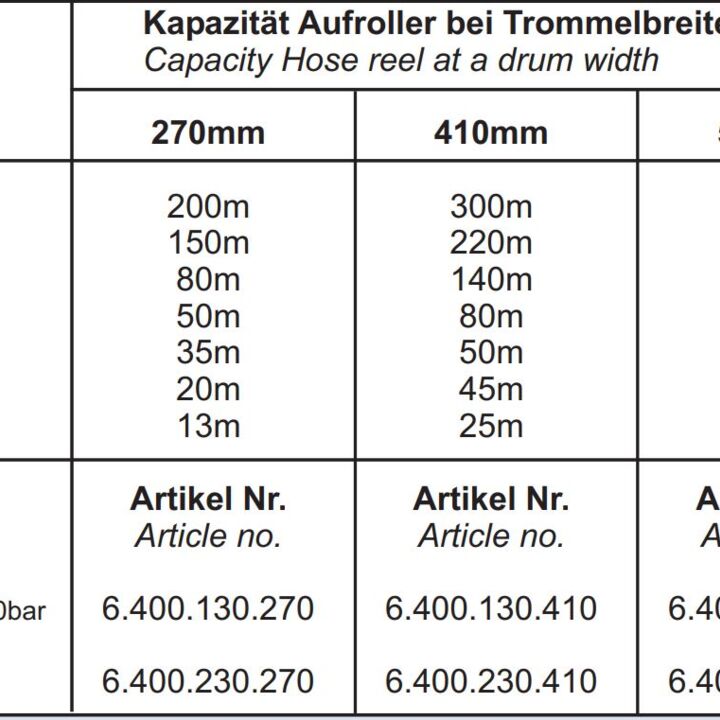 • Schlauchkapazität: 25m - 63mm AD / 65m - 50mm AD