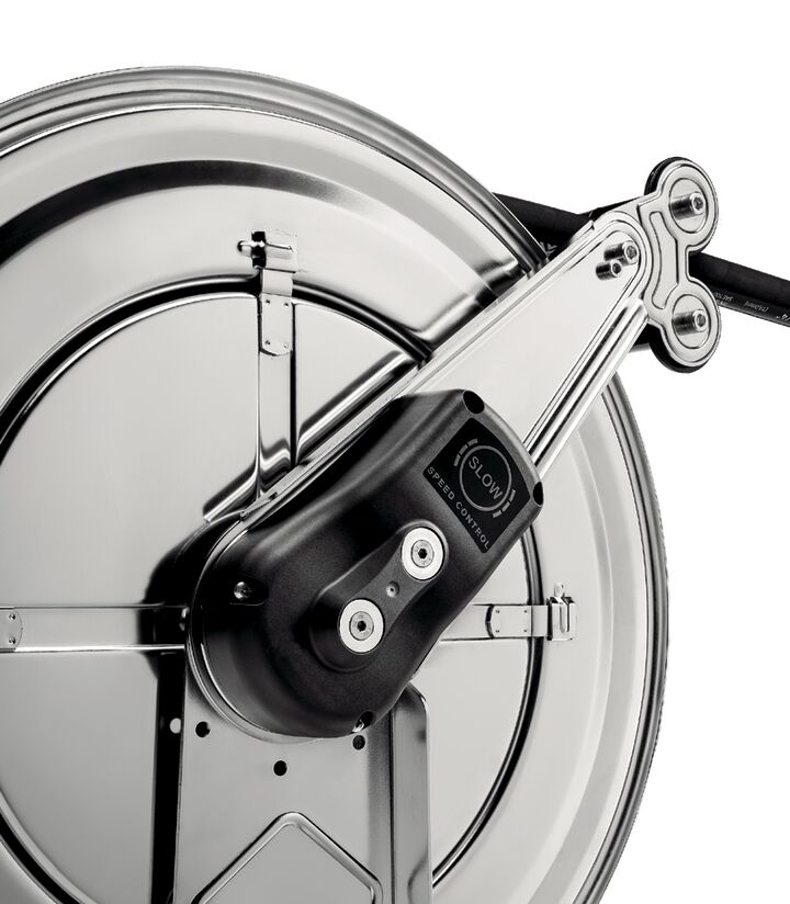 • für ein kontrolliertes und sicheres Zurücklaufen des Schlauches