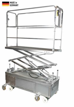 •Flexible Arbeitshöhe: Die Plattformhöhe kann manuell über verstellbare Aluminiumböden angepasst werden. Eine elektrische Höhenverstellung ist optional erhältlich.