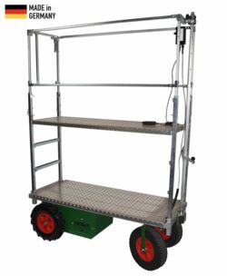 Die EP-Cart ist eine mobile Arbeitsbühne, speziell entwickelt für Pflege- und Erntearbeiten im Gewächshaus. Sie bietet eine komfortable Bedienung, hohe Flexibilität und zuverlässige Leistung – auch auf unebenem Gelände.