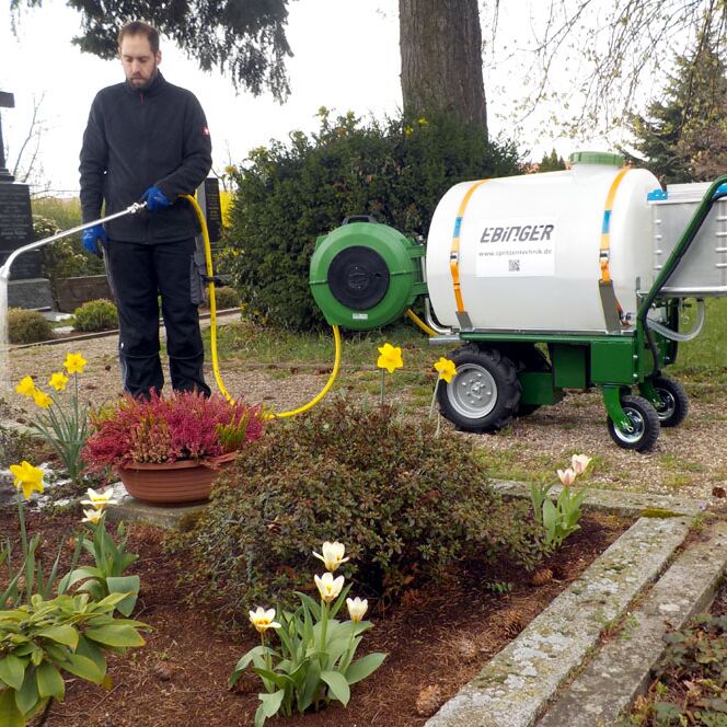 In Kombination mit der Bewässerungseinheit BW 200 und der Akku Pumpe TBW wir der der Donkey Plus zum mobilen Bewässerungsfahrzeug für Friedhofsgärtner, im kommunalen Bereich oder überall dort, wo leise und emmissionsfrei bewässert werden muss.