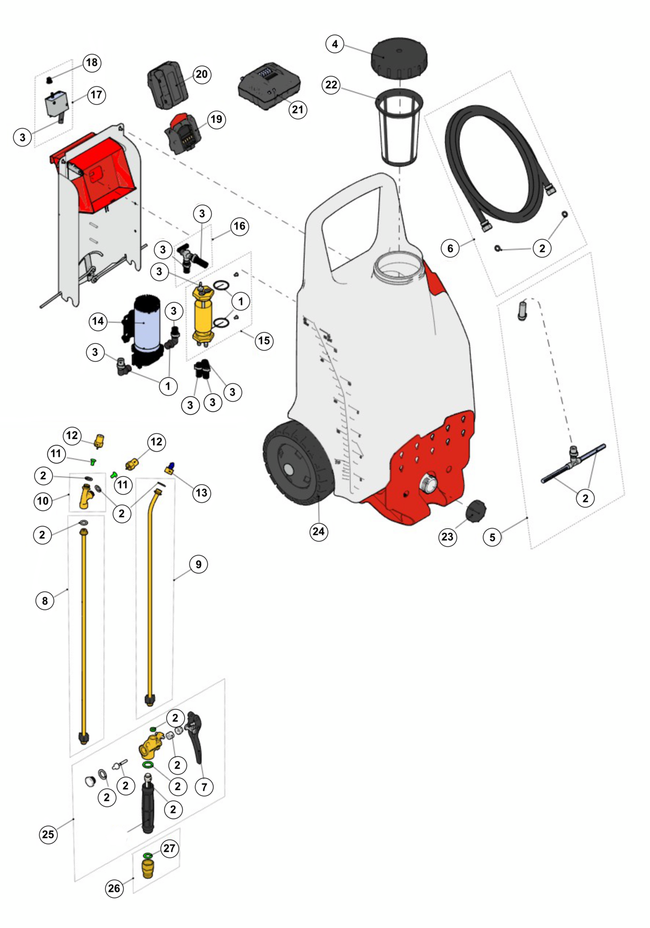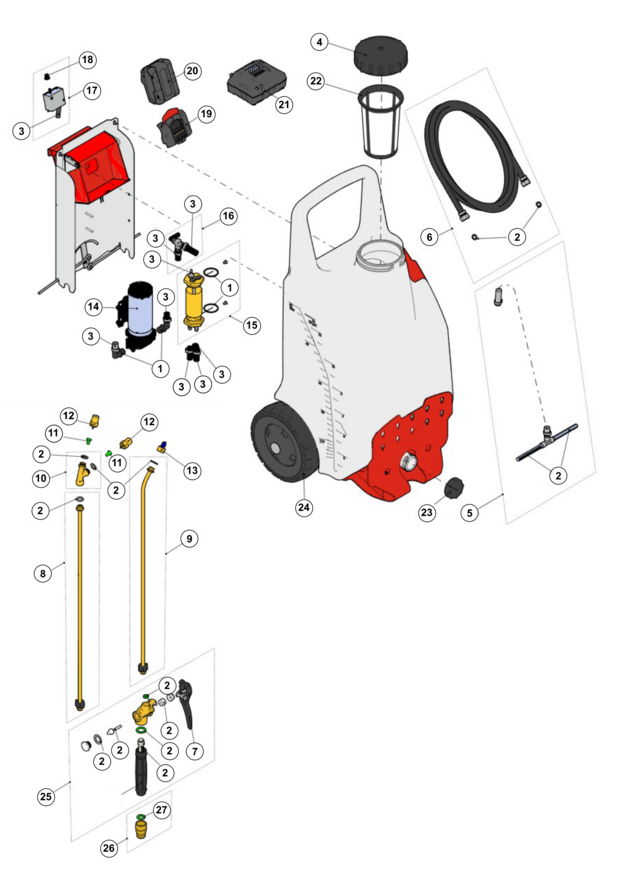 • Sprühdauer: bis 16 h resp. bis 1065 l pro Akkupack-Ladung (je nach Druck und Zubehör)