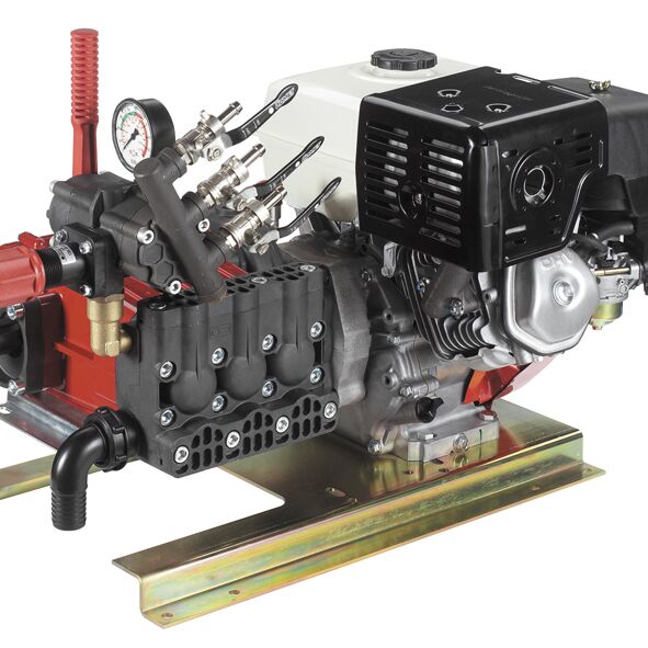 Leistungsstarke Motorpumpe zum Aufbau auf Karrenspritzen oder für andere Spritzgeräte.