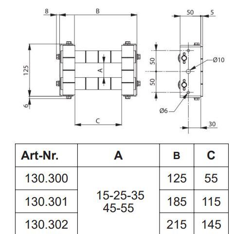 • Durchgang 115x15-55mm • Außenmaße 185x125mm